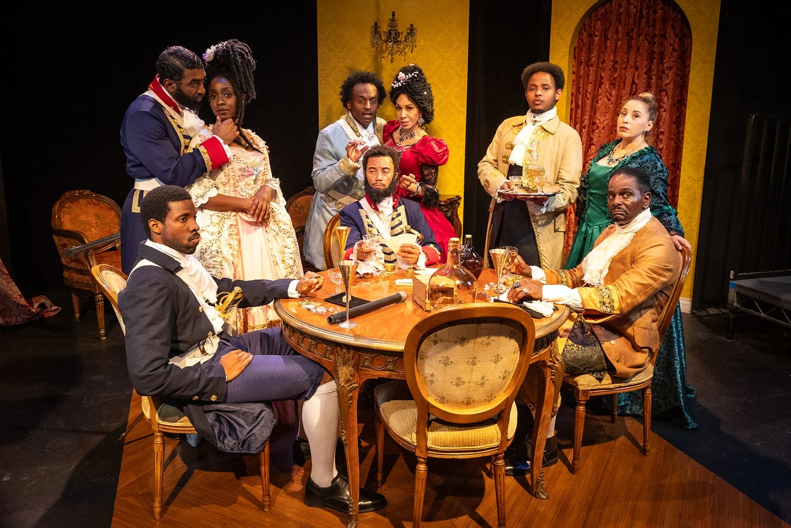 Photos features cast of The Great Lover 2025. CAST: (in order of appearance) Tiffany Coty-Goines - Marquee De Prie, Jenny Cadena - Mariette her maid, Dan Gbrayes - A servant, Julio Hanson - Duke de Richelieu, CJ Obilom - Gabrielle De Belle-Isle, Kermit C. Burns - Count D’Aumont, Josh Bruce - Chevalier Chamblay, Jason Mimms - Lieutenant Sevran, Talmadge Talib - Chamillac. Photo by Kermit Carlyle Photography.